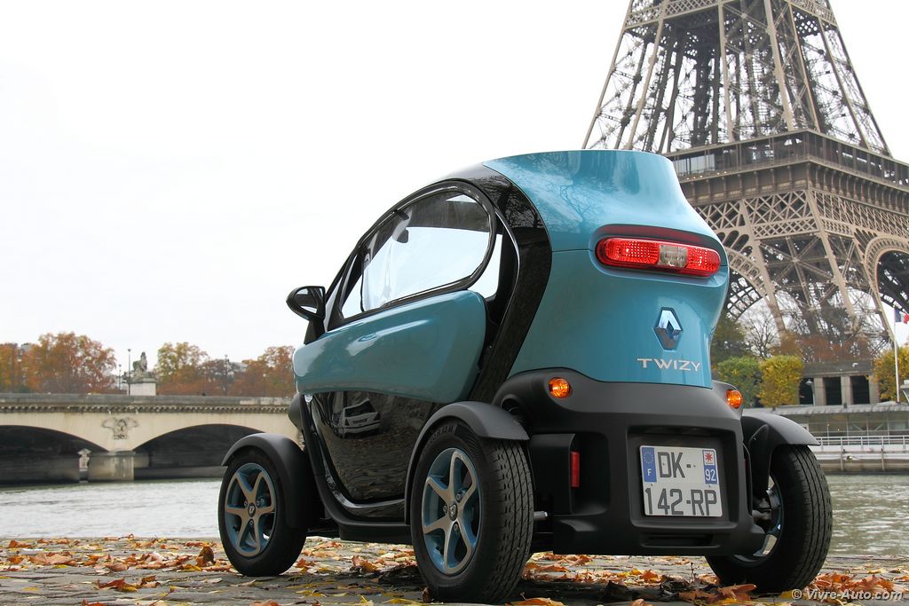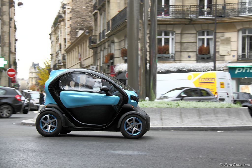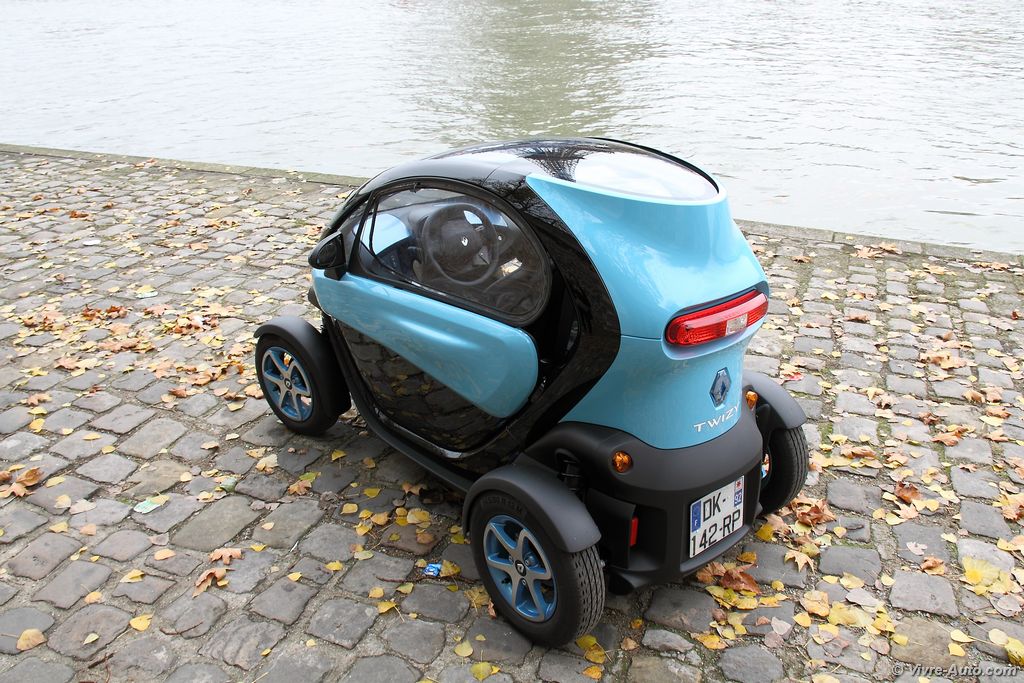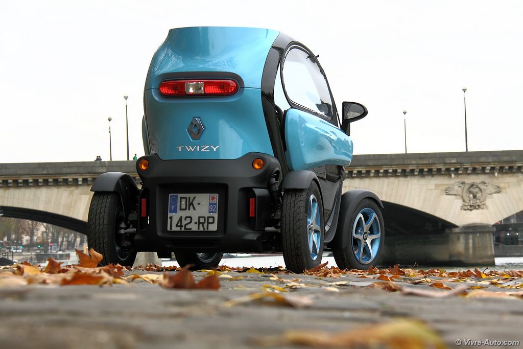 Même après deux ans de présence dans les rues, le Twizy fait toujours l’effet d’un concept-car échappé d’un salon. Avec ses roues aux quatre coins, sa cellule de sécurité apparente et sa compacité record (2,34 m de long pour seulement 1,23 m de large), il attire tous les regards.