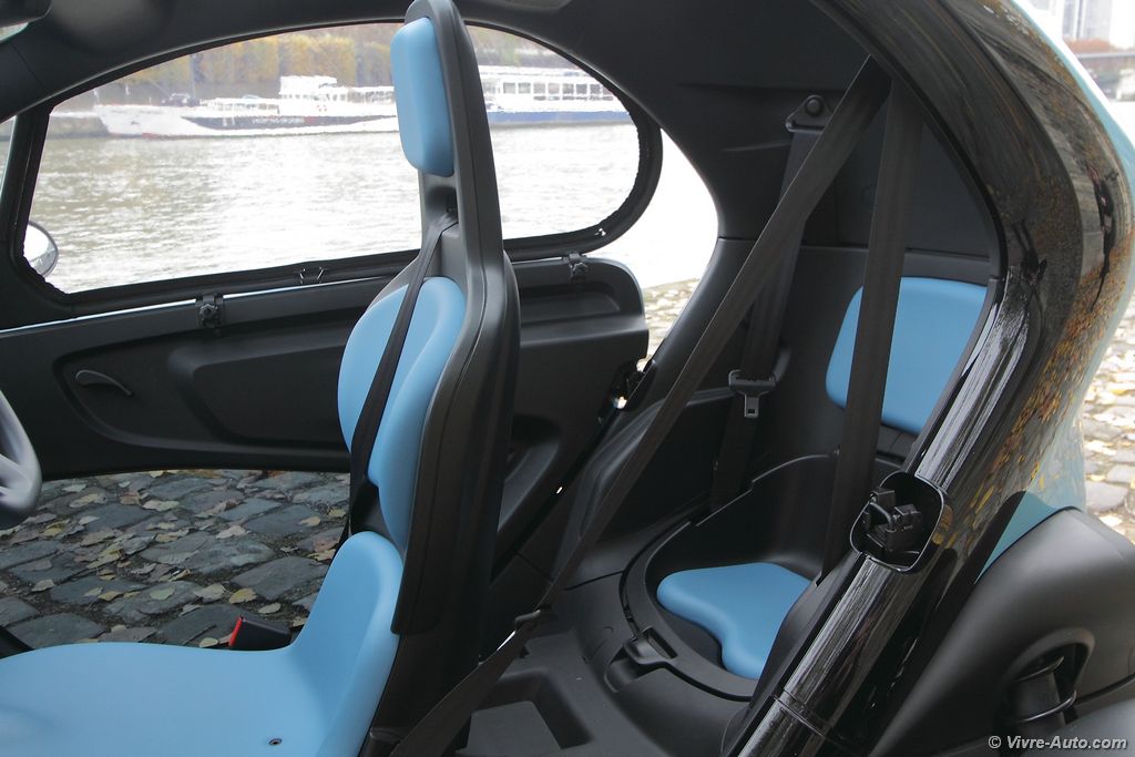 Cependant, face à un scooter à trois roues type MP3, le Twizy offre une sécurité passive bien supérieure grâce à sa cellule de sécurité et son airbag frontal. Il se place entre deux mondes, celui du deux-roues et celui de la Smart ED, bien plus chère et volumineuse.