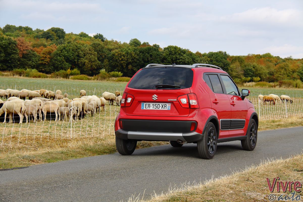 Notre Suzuki Ignis 1.2 Dualjet 90 en finition haut de gamme Pack s’affichait au tarif particulièrement compétitif de 15 740 €. Pour bénéficier du look baroudeur de notre modèle d’essai, il fallait ajouter le Pack Baroudeur (comprenant les sabots avant/arrière et les protections latérales). À un peu plus de 16 000 €, l’équipement est tout simplement imbattable : navigation GPS, caméra de recul, accès et démarrage sans clé, climatisation automatique et même l’alerte de franchissement de ligne.