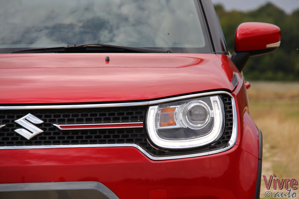 L’Ignis, c’est d’abord une silhouette. Haute sur pattes (1,60 m), courte (3,70 m) et dotée d’un regard perçant avec ses optiques LED en « U », elle ne ressemble à rien d’autre. Les designers se sont même amusés à placer trois rainures sur le montant arrière, clin d’œil à la célèbre Suzuki Fronte Coupé des années 70.