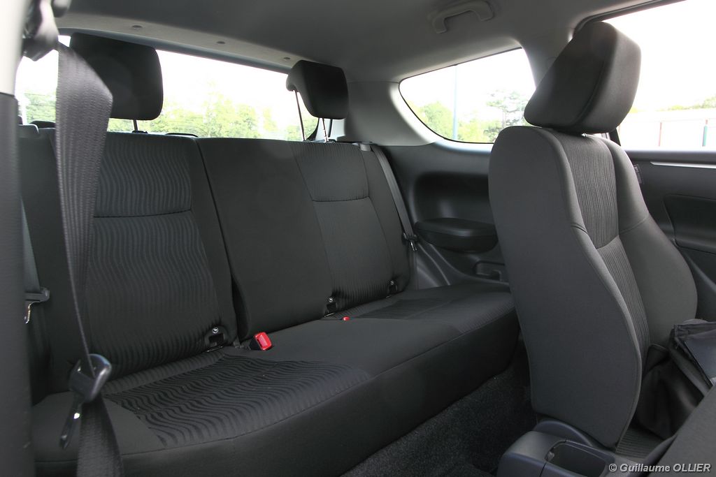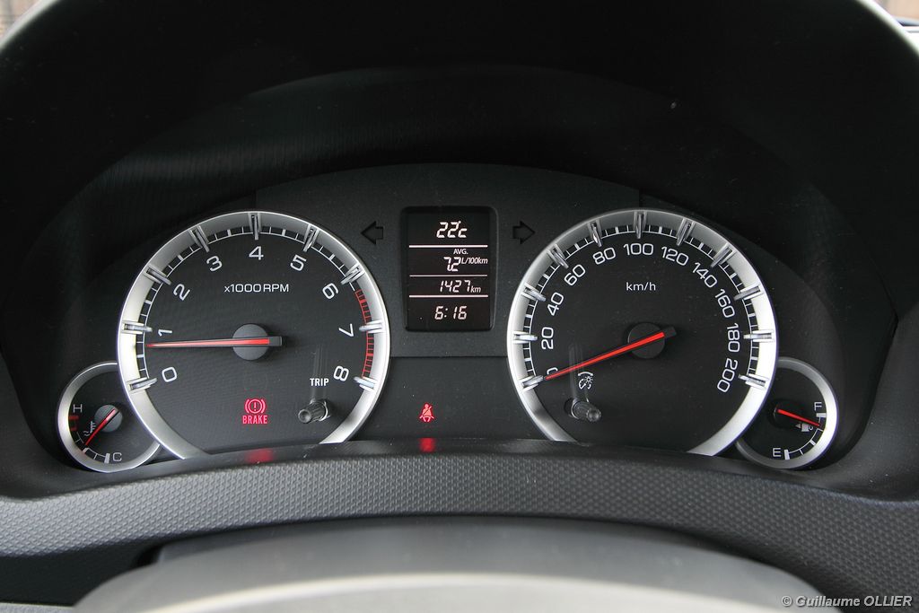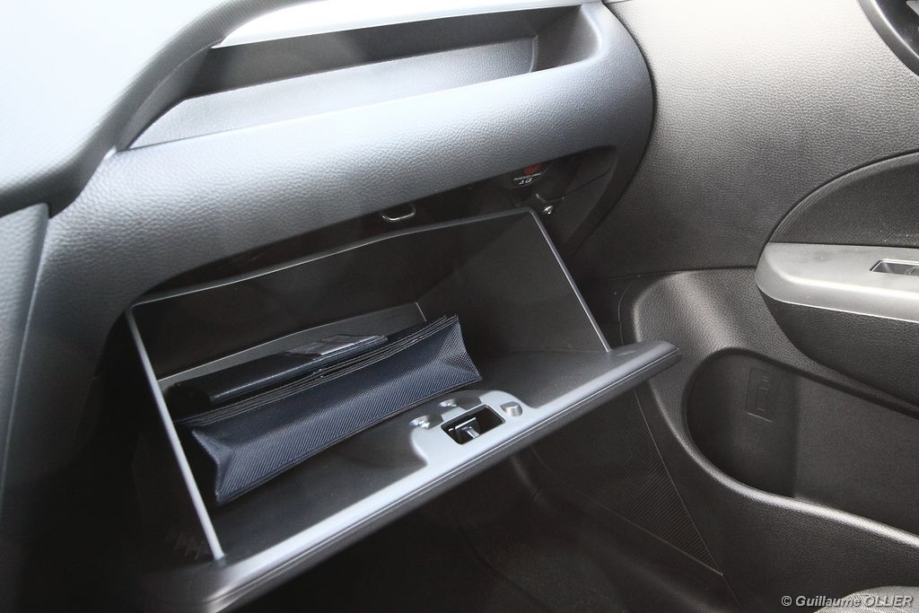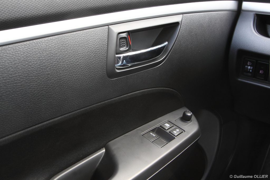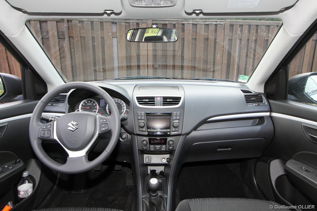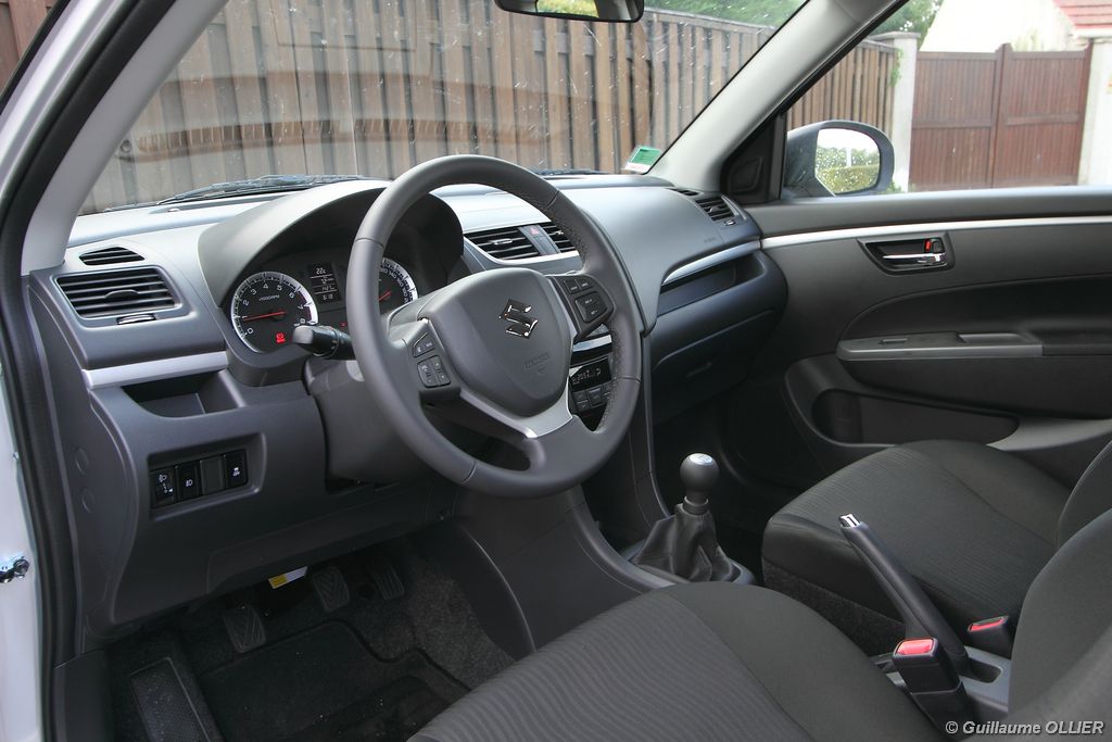 En s’installant à bord de la nouvelle Swift, on remarque tout de suite une présentation plus moderne et travaillée. Il manquerait même une petite touche de fantaisie tant l’habitacle fait sérieux, avec comme seule couleur dominante, le noir. Comme dans la majorité des japonaises les plastiques sont durs mais les assemblages restent de bonne facture. La position de conduite est bonne, et dorénavant le conducteur bénéficie de multiples réglages, comme un volant réglable en hauteur et en profondeur. L’ergonomie est excellente, toutes les commandes tombent sous la main. On aime également l’instrumentation, le graphisme des compteurs, et la bonne lecture des afficheurs en caractères blancs. Côté multimédia, un autoradio CD/MP3 est livré de série avec la prise USB, compatible iPod. Nous regrettons l’absence de GPS intégrée, la plupart des concurrents le proposent sur ce segment. C’est dommage d’autant que la Swift propose par exemple un dispositif d’ouverture et de démarrage sans clé. Le point faible, c’est l’habitabilité. On se pose d’ailleurs la question suivante : où sont passés les 9 cm en plus ? Aux places arrière, même si les passagers bénéficient d’une garde au toit correcte, ils se plaindront rapidement d’un espace aux jambes trop faible pour la catégorie. Quand au coffre, aucune amélioration n’est apportée puisque son volume reste identique avec 211 litres. De plus son seuil de chargement est plus élevé. La demoiselle se rattrape avec ses espaces de rangements assez nombreux, comme par exemple le coffret sur la planche de bord ou les bacs de portières gnéreux.