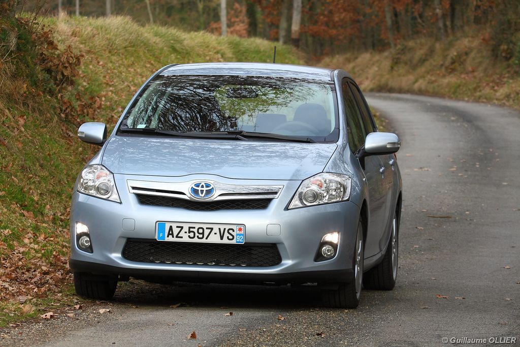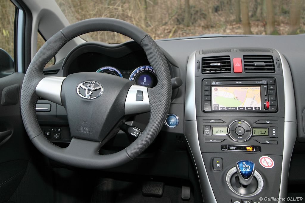 L’hybride n’est plus réservé aux modèles exclusifs ! En effet la Toyota Auris Hybride est une berline compacte comme une autre. Son style passe partout n’oblige pas le propriétaire à avoir une image d’écologiste, comme c’est le cas avec la Prius. On observe tout de même quelques changements à l’extérieur de la voiture, comme de légères modifications sur la calandre, le spoiler, le bouclier, l’apparition de feux de jour à diodes et les sigles sur fond bleu. Enfin, l’assiette est abaissée de 5 mm. L’Auris Hybride dispose en série de jantes alliages, de 15 à 17 pouces. Six teintes sont proposées : Noir métal, Blanc Nacré, Bleu Pacifique, Gris aluminium, Blanc Pur, et Bleu Sidéral comme notre version. Commercialisée en Europe, la compacte hybride de Toyota est fabriquée dans l’usine anglaise de Burnaston.