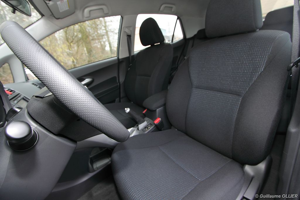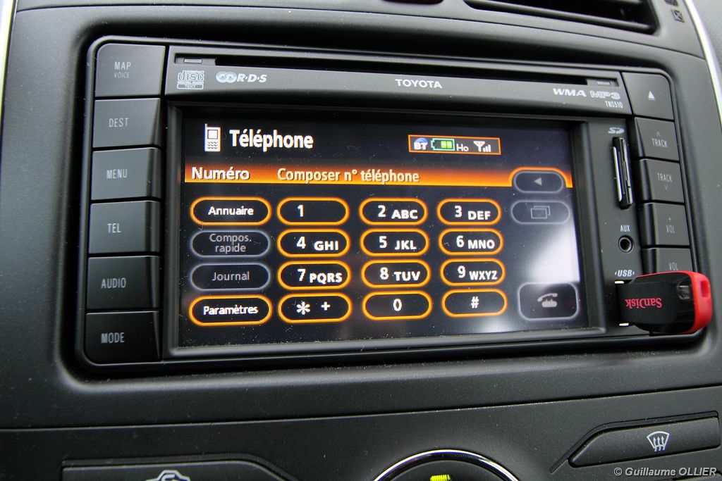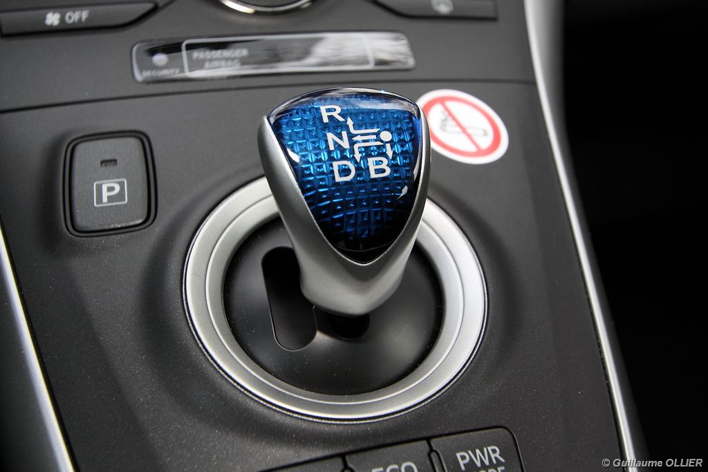 route c’est tout autre chose où le moteur thermique à tendance à mouliner et à être trop bruyant. Le même ressenti que lors de nos essais des Honda Insight et Jazz Hybrid. La boîte tire les rapports trop longs et l’on a l’impression qu’elle ne veut pas passer le rapport supérieur. De plus l’absence de palettes au volant n’arrange rien à l’affaire. Une boîte de vitesse manuelle aurait certainement arrangé les choses, mais malgré tout la CVT (boîte à transmission continue) reste agréable en dehors de ça. Cette transmission offre trois modes de conduite, d’où les trois boutons sous le levier de vitesse. Le mode « EV » vous permet de rouler tout électrique, le mode « ECO » privilégie les consommations de carburant en limitant par exemple le recours à la climatisation, enfin le mode « Power » est censé offrir une réactivité du moteur en toute circonstance. Un mode « B » peut s’enclencher à la place de « D », son rôle est d’accentuer le frein moteur pour permettre à la batterie de se recharger un peu plus. C’est très appréciable au quotidien. Abordons maintenant le sujet le plus important, la consommation. Annoncée à 4,0 l/100 km en cycle mixte sur le papier nous avons voulu voir si les chiffres étaient proches de la réalité. C’est à basse vitesse que l’Auris Hybride réalise ses records, sur route nous avons constaté une moyenne de 4,9 l/100 km, et 4,4 l/100 km dans une trentaine de kilomètres de bouchon. En conduite un peu plus soutenue la barre des 6l n’a pas été atteinte. Pour finir, même si les routes sinueuses ne sont pas vraiment du domaine de l’Auris Hybride, on notera l’excellente tenue de route, avec un châssis plutôt sécurisant.