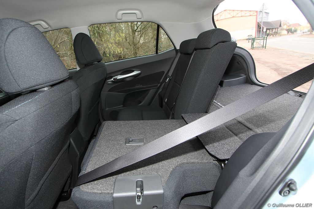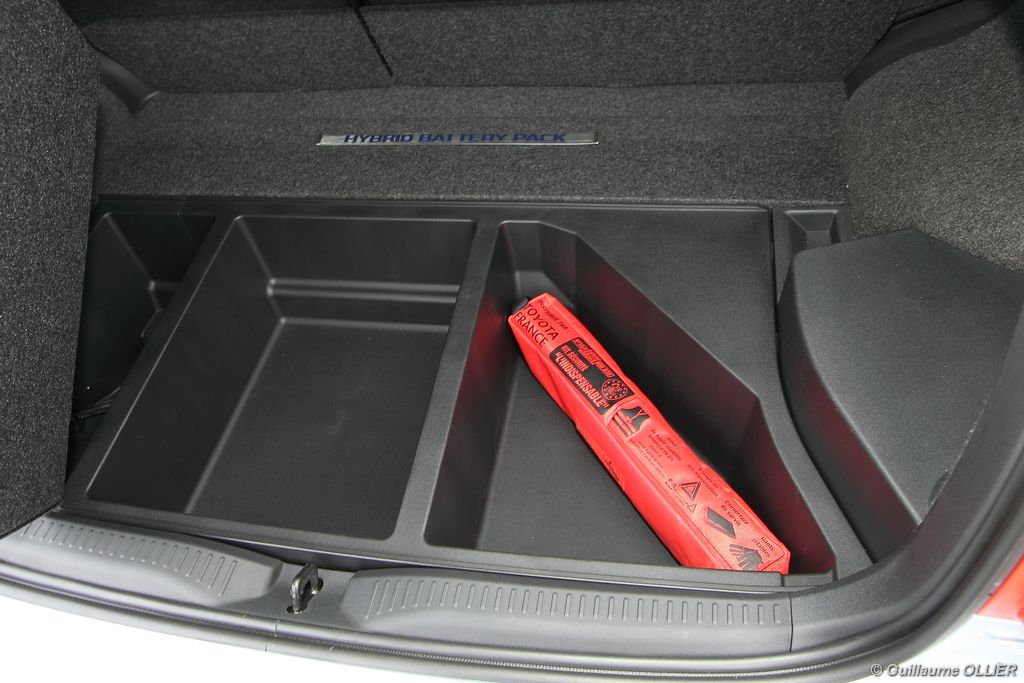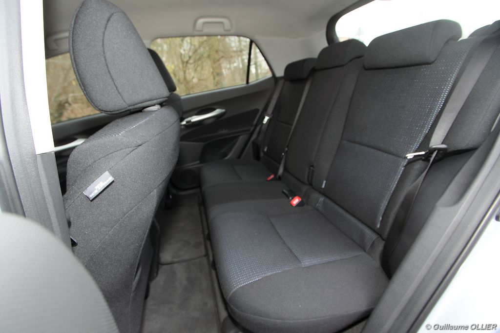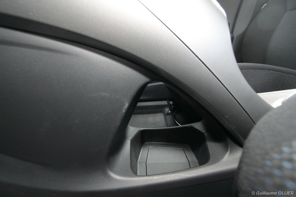 Une fois installé à bord, cette version hybride se remarque par son levier de vitesse spécifique et son instrumentation dédiée. Même si certains plastiques sont peu flatteurs, les ajustages sont parfaits. L’ergonomie est bonne dans l’ensemble, nous regrettons juste que les commandes au volant ne soient disponibles qu’avec l’option Bluetooth. Sur notre modèle il fallait donc passer les chansons, où les stations de radio depuis l’autoradio directement… Le conducteur trouvera une position de conduite adaptée mais les sièges nous paraissent un peu trop fermes à notre goût. Cette grande compacte bénéficie d’une bonne habitabilité aussi bien à l’avant qu’à l’arrière. Son point faible reste son volume de chargement, puisque le coffre est le plus petit de la catégorie avec 279 litres. Il faut bien les mettre quelque part ces batteries ! On retrouve plusieurs rangements à bord, un petit creux derrière la console, deux boîtes à gants, et des porte-gobelets.