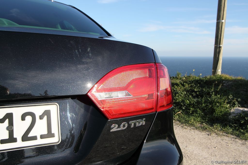 La gamme de motorisation disponible au lancement de la Jetta est simple : deux Diesel et un essence. Pour notre essai nous avons choisi les TDi 105 et 140, tous deux équipés de la boîte automatique à double embrayage DSG. Nous commençons notre prise en main par le 1.6 l TDi 105. Très silencieux, le quatre cylindres se montre très disponible (250 Nm dès 1 500 tr/mn) et offre des performances plutôt satisfaisantes (0 à 100 km/h en 11,7 secondes). Il est suffisant pour déplacer les presque 1,4 tonne de la Jetta. Au passage précisons qu’elle a perdu 50 kg par rapport à l’ancienne. A l’aise en ville, c’est surtout sur route où l’on pourrait lui reprocher un manque de pêche, et encore seulement lors des grandes montées… Là où le 2.0 TDi est très à l’aise. Ce dernier est correctement rempli quel que soit le régime et offre également une souplesse exemplaire. Très vif, il procure un grand plaisir de conduite, et les dépassements peuvent se réaliser en toute sérénité. En plus du silence à bord, nous n’avons pas relevé de vibration lors des démarrages sur les deux motorisations. Le TDi 140 est ainsi plus adapté aux usagers de la route, mais le TDi 105 fait déjà très bien son boulot et il représentera d’ailleurs la majorité des ventes. Il est également proposé sous l’appellation BlueMotion, doté en plus d’un système Start-Stop et de la récupération d’énergie au freinage, il rejette 10 g/km de CO² en