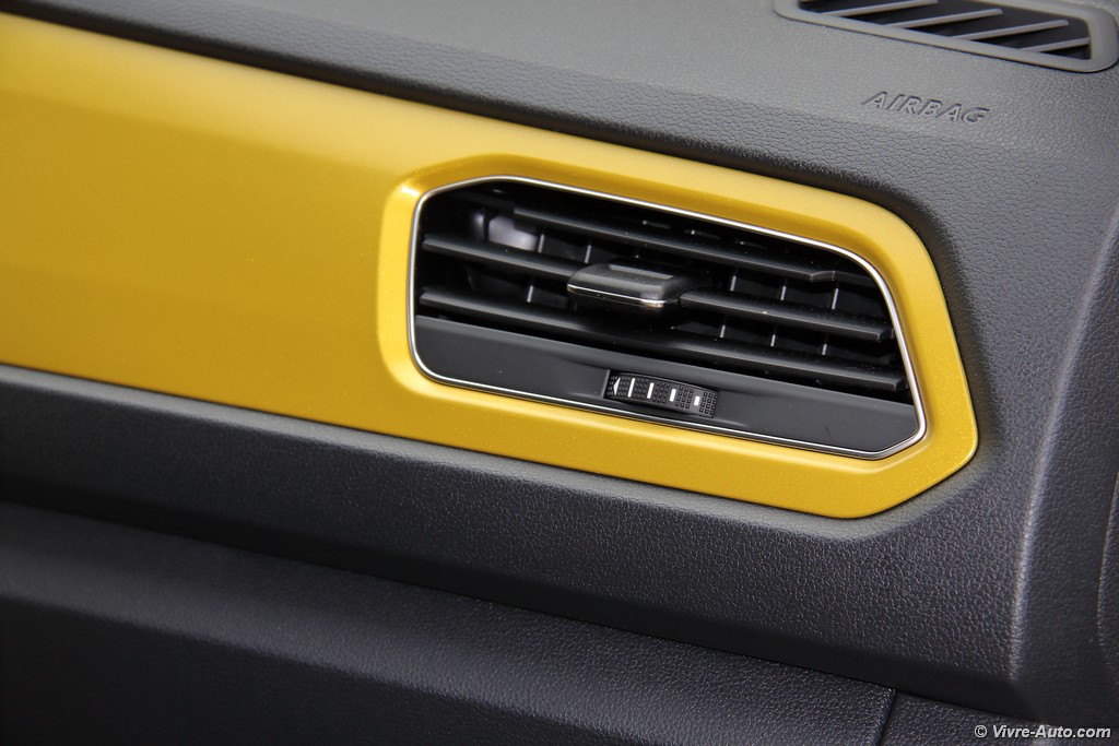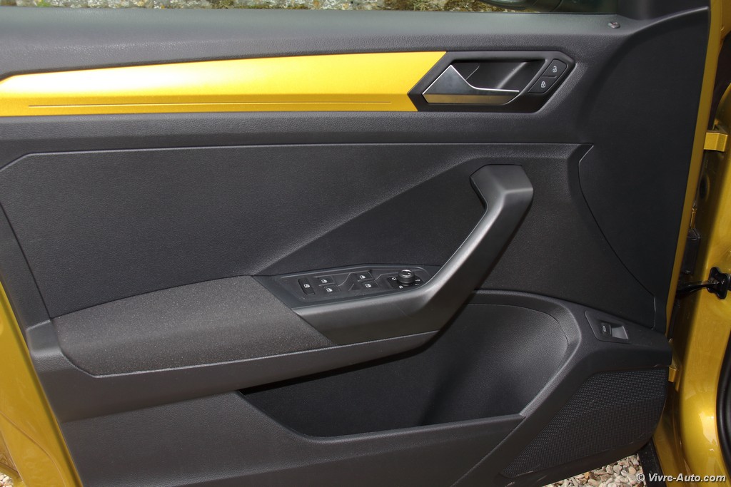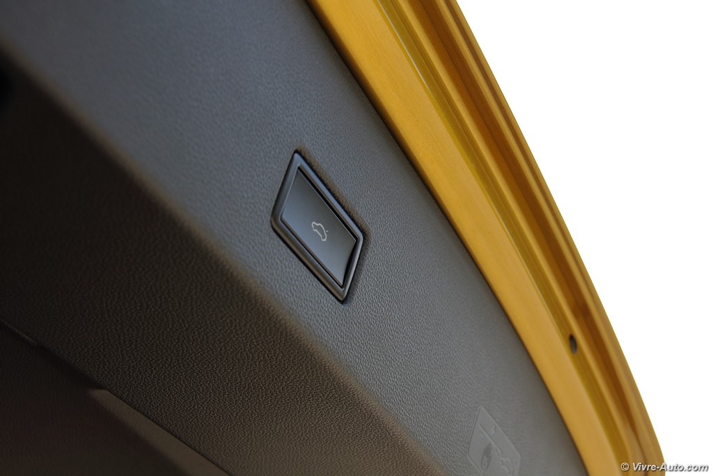 En montant à bord, le choc visuel continue. Notre modèle d’essai, paré d’éléments de planche de bord peints en jaune, balaie instantanément la grisaille habituelle du constructeur. L’assemblage est, comme toujours, rigoureux, mais on note un changement de philosophie sur les matériaux : les plastiques sont ici majoritairement durs et sonnent parfois un peu creux sur les contre-portes. Un choix assumé pour compenser le coût des technologies embarquées.
