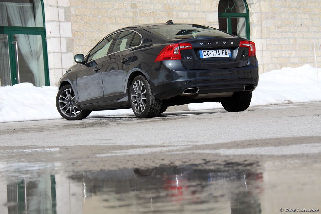 5 cylindres. Mais les années passent et il faut répondre aux normes en matière de pollution. Le constructeur se donne ainsi au downsizing en intégrant des nouveaux moteurs 4 cylindres plus efficients sous le label Drive-e. Mais il ne s’agit pas que d’abaisser les rejets de CO² et les consommations, il faut également séduire les clients adeptes et habitués des cinq cylindres. Nous avons ainsi pris le volant de la S60 avec le nouveau D4 qui devrait représenter une bonne partie des ventes. Développant 181 ch et 400 Nm de couple, ce bloc s’en sort avec merveille. Très souple à bas régime il se réveille à la demande. Même s’il peut se montrer bruyant à basse vitesse, son silence de fonctionnement, le reste du temps, est très appréciable.