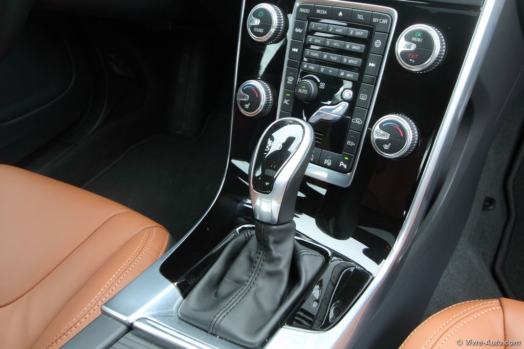 La Geartronic et ses huit rapports est un exemple de douceur et de réactivité, cette boîte est une réussite et augmente considérablement l’agrément de conduite. De plus elle n’engendre pas énormément de consommation supplémentaires par rapport à la transmission mécanique. Il faut le dire, ce D4 est extrêmement sobre, il dispose de la technologie i-ART qui, grâce à son système de régulation du débit de chaque injecteur, réduit considérablement les consommations. Ajouté à cela que la Geartronic tend à rouler à régime constant, on obtient un beau résultat. En enchaînant autoroute, agglomération et montagne notre moyenne s’est retrouvée sous les 6,5 l/100 km. Tant pis donc pour le cinq cylindres, ce nouveau bloc est une réel réussite. Sobre et performant, pas mieux ! Malgré nos jantes de 18 pouces, la S60 s’est montrée plutôt confortable et son châssis, sans être dynamique, efficace. Petit bémol, un rayon de braquage un peu long.