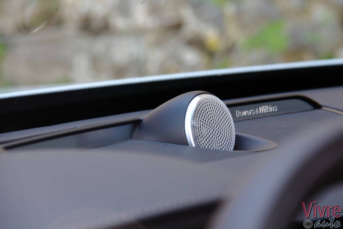 Le cuir Nappa à grain fin recouvre les sièges, tandis que le bois flotté et l’aluminium brossé s’invitent sur la planche de bord. La pièce maîtresse reste cette tablette verticale de 9 pouces Sensus, très fluide, qui centralise la quasi-totalité des fonctions.