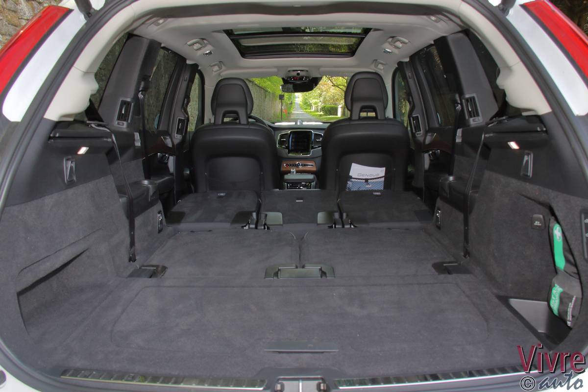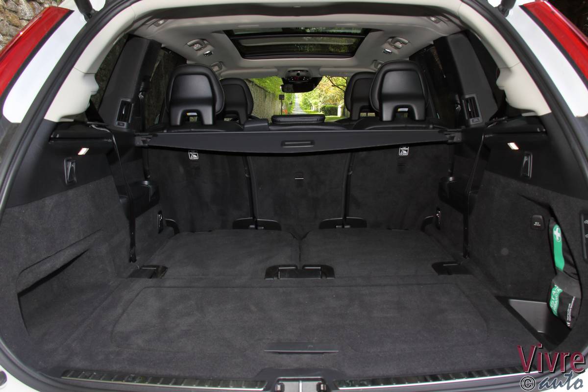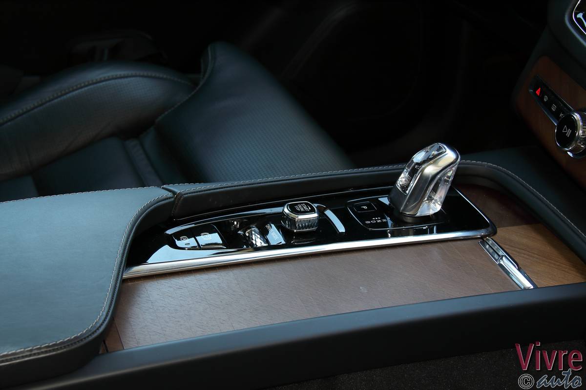 Toutefois, le T8 s’offre un bijou exclusif : le levier de vitesses en cristal d’Orrefors. C’est artisanal, c’est magnifique et cela apporte une touche de raffinement supplémentaire lors des passages en mode Drive. L’espace à bord reste princier. Malgré la présence des batteries et de la technologie hybride, Volvo a réussi l’exploit de conserver les sept vraies places. Même au troisième rang, deux adultes peuvent s’installer dignement. Le volume de coffre, bien que légèrement amputé en configuration 7 places, reste généreux et modulable à souhait. Enfin, l’expérience est complétée par le système audio Bowers & Wilkins (en option mais indispensable), qui transforme l’habitacle en salle de concert de Göteborg.