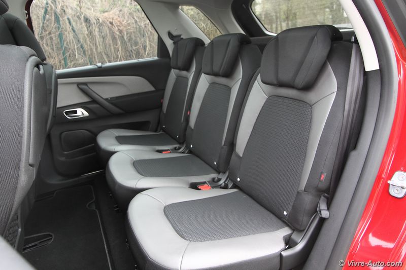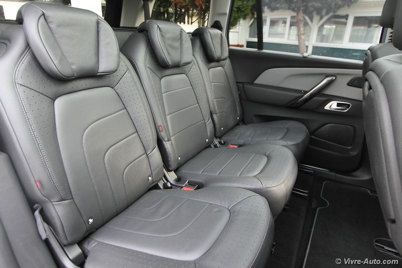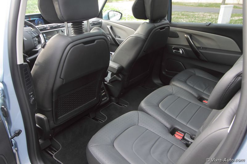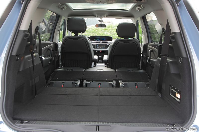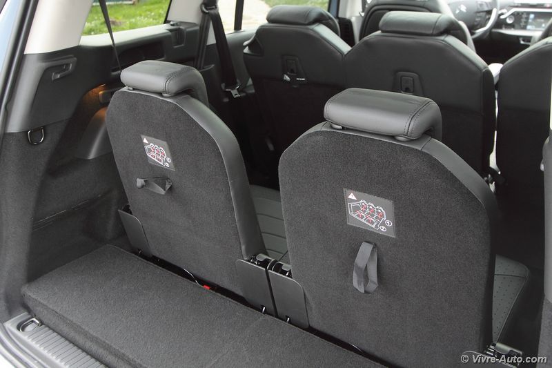 Le volume du coffre du C4 Picasso grimpe à 537 litres ou 630 litres lorsque les sièges de la deuxième rangée sont avancés au maximum, c’est 37 litres de plus d’avant. Le Grand Picasso offre un volume de chargement un peu plus conséquent de 700 litres mais surtout deux places supplémentaires avec des sièges qui s’escamotent sous le plancher. Cette troisième rangée est plus accessible qu’auparavant et dispose de buses de climatisation mais reste toujours dédié aux enfants en bas âge et réduit considérablement le volume du coffre. Sur les deux versions le hayon peut être motorisé et l’accès est très grand avec l’absence des feux et un seuil bas. Lorsque les sièges sont rabattues on obtient un plancher plat, la manœuvre s’effectue très facilement.